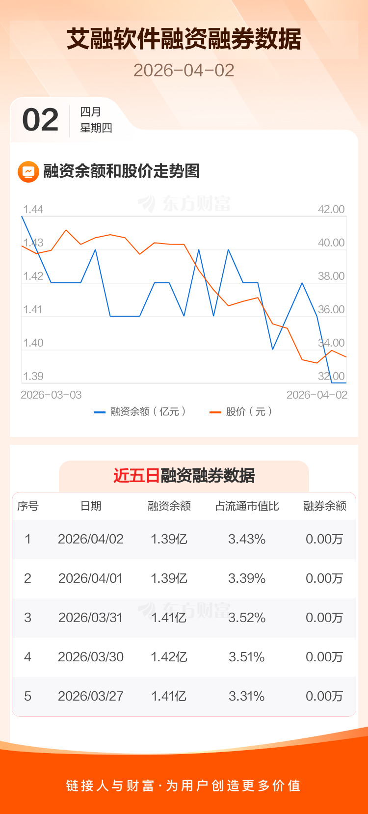 交易所最新数据显示,艾融软件于2026年4月2日获融资买入167.75万元,融资偿还160.18万元,当日融资净买入7.57万元。目前,该股融资余额1.39亿,占流通市值比例为3.43%。