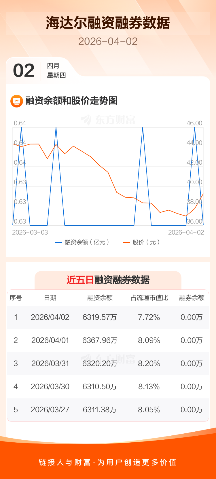 交易所最新数据显示,海达尔于2026年4月2日获融资买入90.24万元,融资偿还138.64万元,当日融资净偿还48.4万元。目前,该股融资余额6319.57万,占流通市值比例为7.72%。