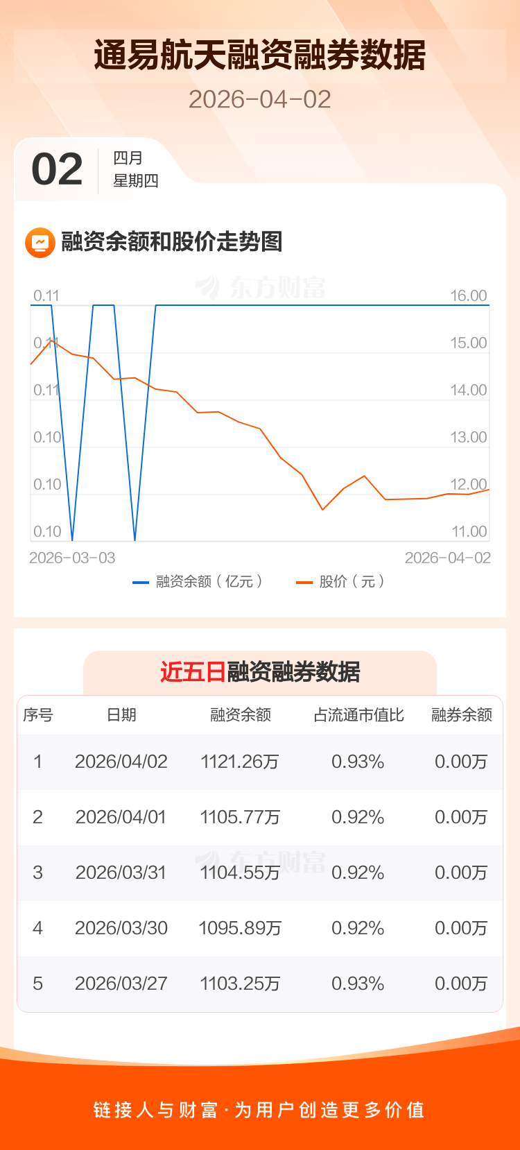 交易所最新数据显示,通易航天于2026年4月2日获融资买入28.83万元,融资偿还13.34万元,当日融资净买入15.49万元。目前,该股融资余额1121.26万,占流通市值比例为0.93%。