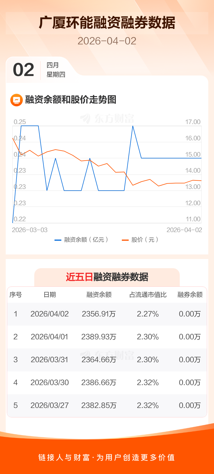 广厦环能:融资净偿还33.02万元,融资余额2356.91万元