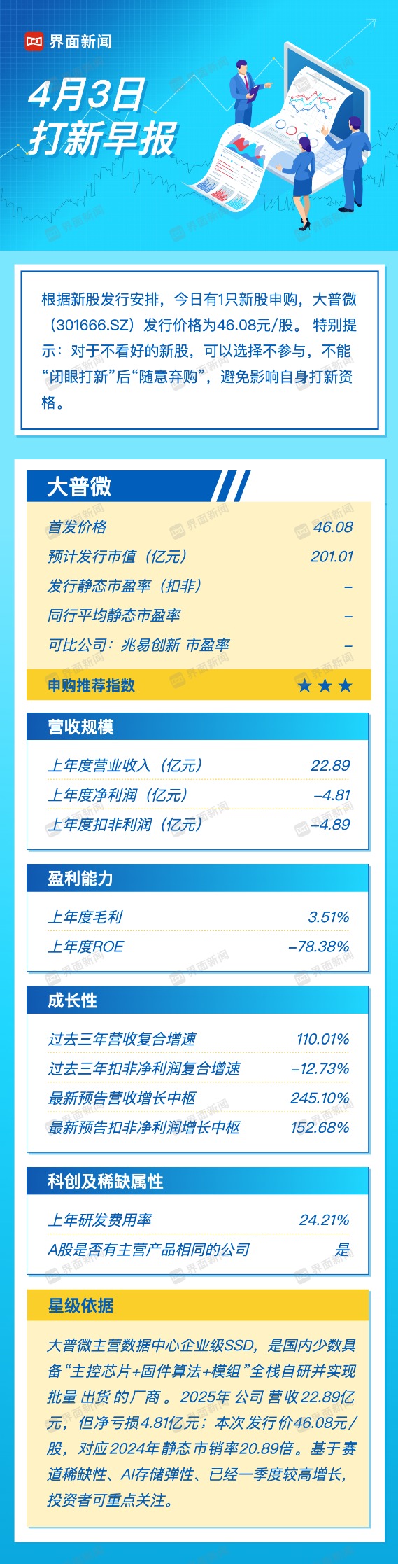 打新早报| SSD产业链龙头大普微今日申购