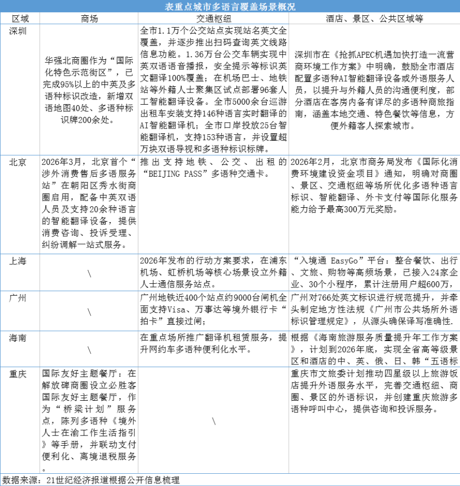 通用解题方式是各大城市在重点商圈、酒店、景区、交通枢纽等场景升级多语言服务。
