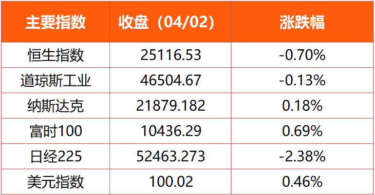 美股市场:截止4月2日收盘,美股三大指数涨跌不一。有分析人士指出,由于中东局势传出外交缓和信号,市场紧张情绪有所缓解。美股盘中,有报道称,伊朗与阿曼正在起草一项协议,旨在对通过霍尔木兹海峡的船只运输实施“通行监管”,但同时强调不会限制船只通行。