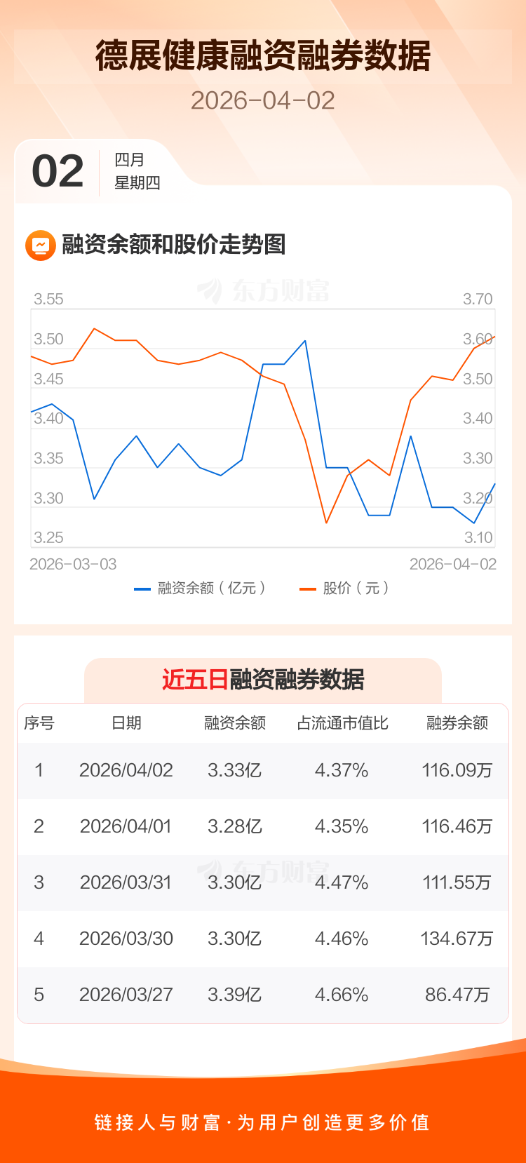交易所最新数据显示,德展健康于2026年4月2日获融资买入1047.06万元,融资偿还633.03万元,当日融资净买入414.03万元。目前,该股融资余额3.33亿,占流通市值比例为4.37%。