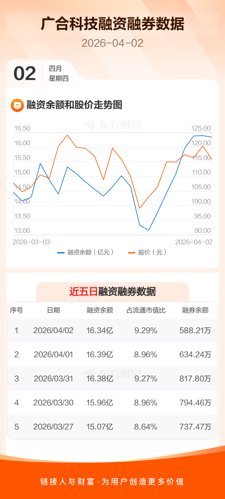 交易所最新数据显示,广合科技于2026年4月2日获融资买入6493.83万元,融资偿还6964.73万元,当日融资净偿还470.9万元。目前,该股融资余额16.34亿,占流通市值比例为9.29%。