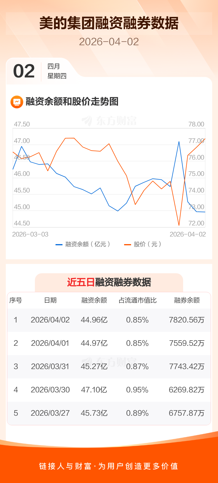 交易所最新数据显示,美的集团于2026年4月2日获融资买入1.57亿元,融资偿还1.58亿元,当日融资净偿还114.62万元。目前,该股融资余额44.96亿,占流通市值比例为0.85%。