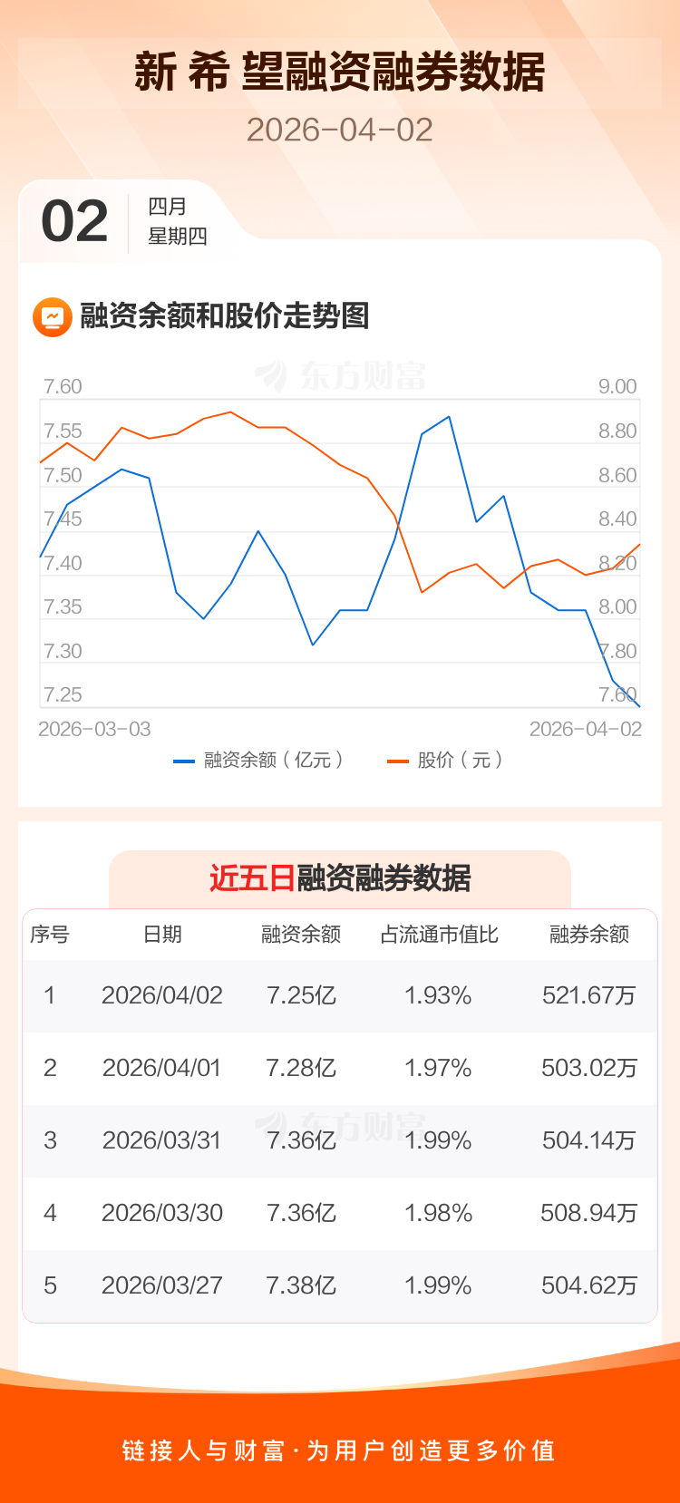 交易所最新数据显示,新 希 望于2026年4月2日获融资买入2020.89万元,融资偿还2285.00万元,当日融资净偿还264.11万元。目前,该股融资余额7.25亿,占流通市值比例为1.93%。