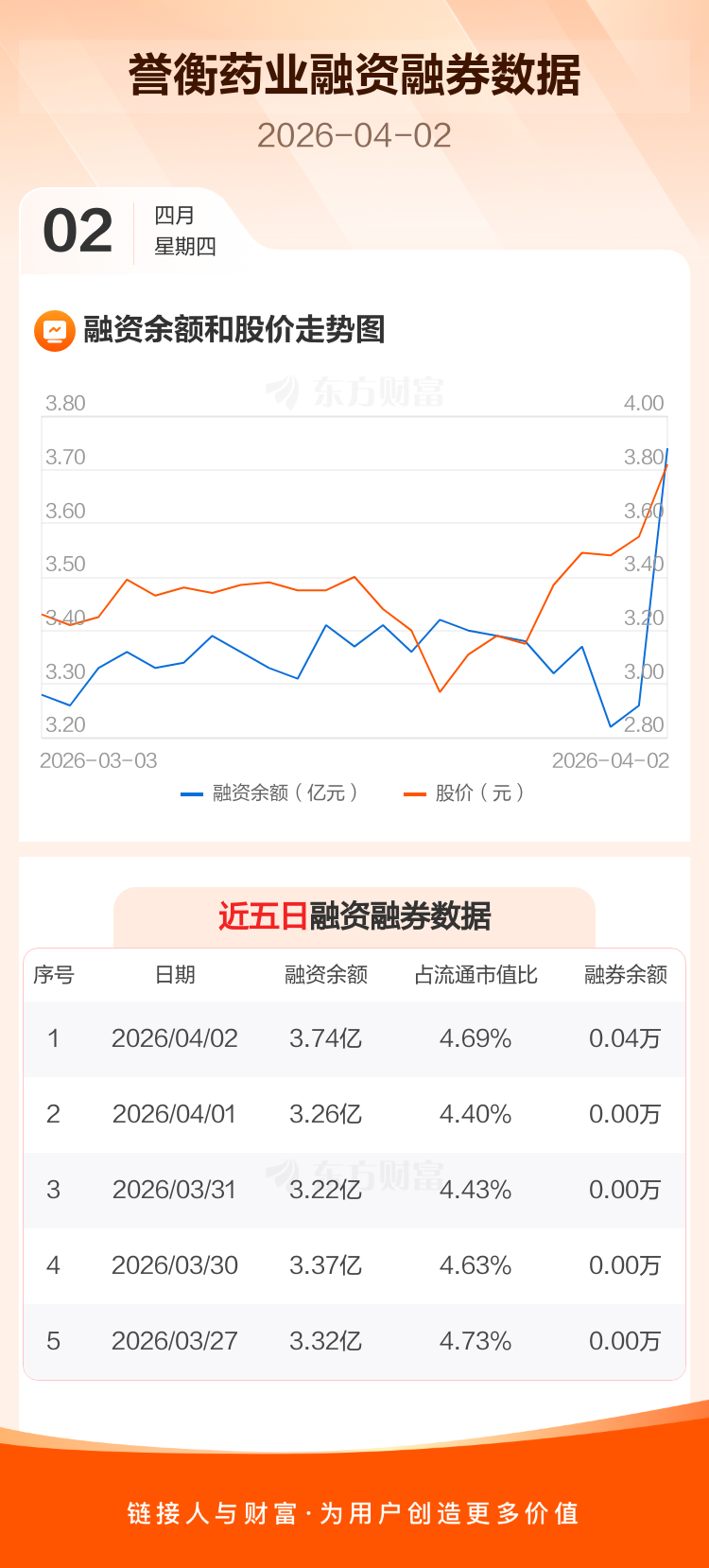 交易所最新数据显示,誉衡药业于2026年4月2日获融资买入1.89亿元,融资偿还1.41亿元,当日融资净买入4810.81万元。目前,该股融资余额3.74亿,占流通市值比例为4.69%。