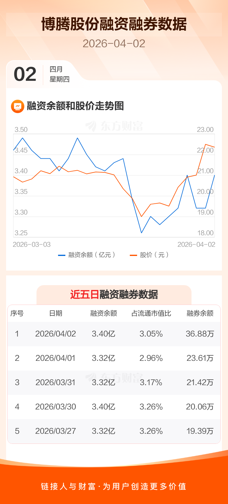 交易所最新数据显示,博腾股份于2026年4月2日获融资买入3863.10万元,融资偿还3046.42万元,当日融资净买入816.68万元。目前,该股融资余额3.40亿,占流通市值比例为3.05%。