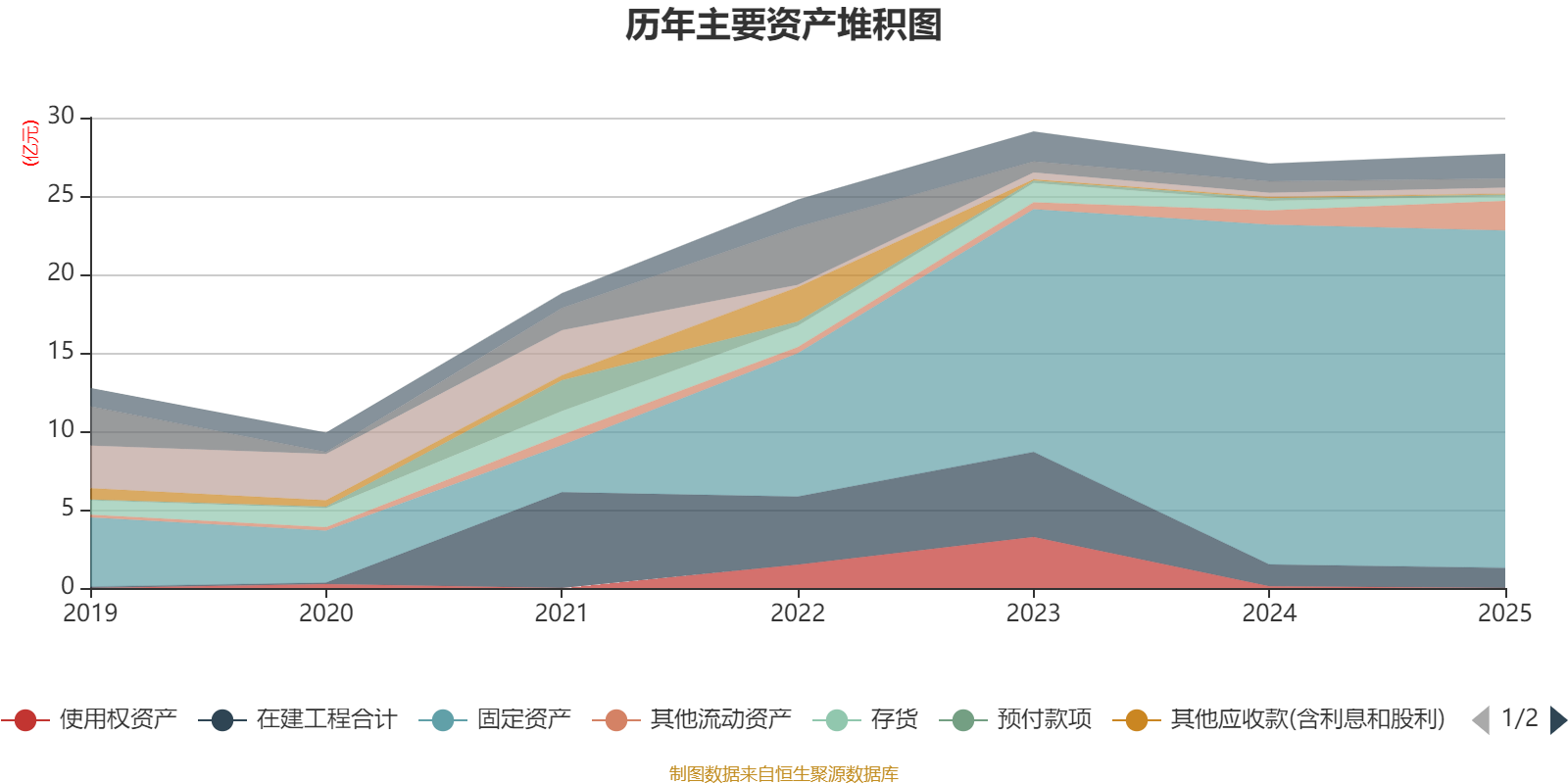 资产重大变化方面,截至2025年末,公司其他流动资产较上年末增加108.81%,占公司总资产比重上升3.47个百分点;固定资产较上年末减少0.76%,占公司总资产比重下降2.39个百分点;递延所得税资产较上年末增加1836.4%,占公司总资产比重上升1.94个百分点;存货较上年末减少51.61%,占公司总资产比重下降1.18个百分点。
