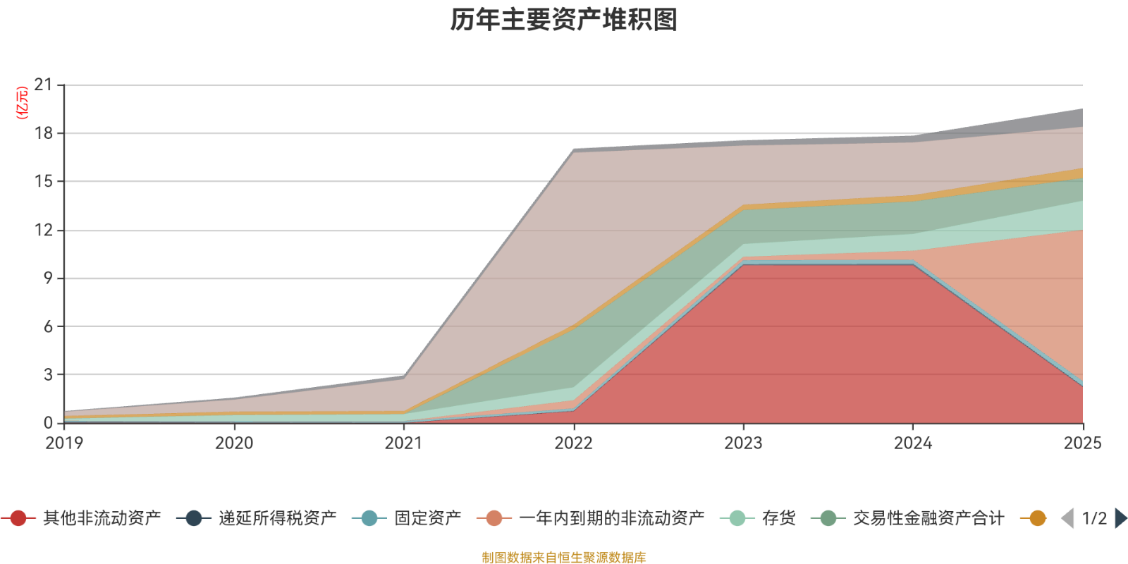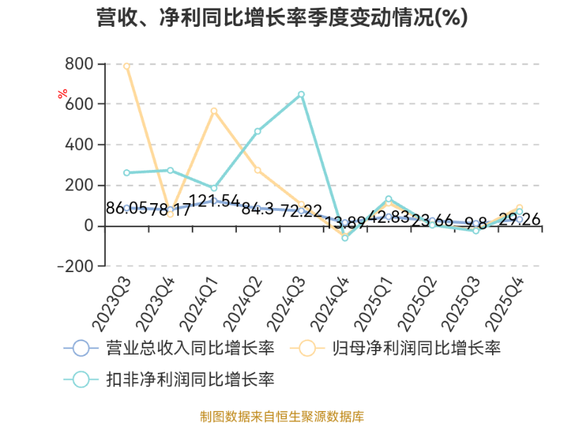 资产重大变化方面,截至2025年末,公司一年内到期的非流动资产较上年末增加1605.66%,占公司总资产比重上升45.03个百分点;其他非流动资产较上年末减少77.22%,占公司总资产比重下降43.43个百分点;货币资金较上年末减少21.65%,占公司总资产比重下降5.23个百分点;交易性金融资产合计较上年末减少30.14%,占公司总资产比重下降4.07个百分点。