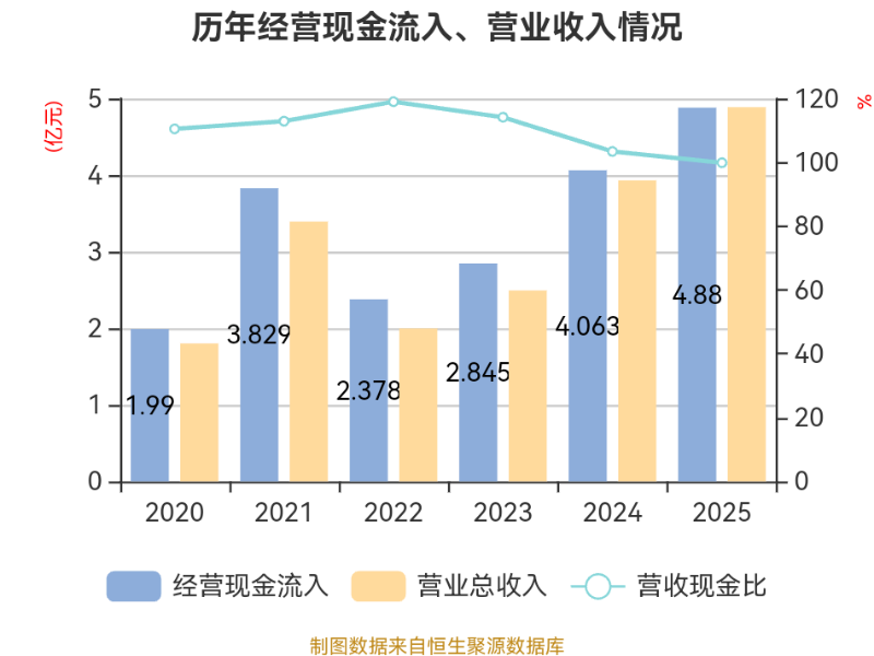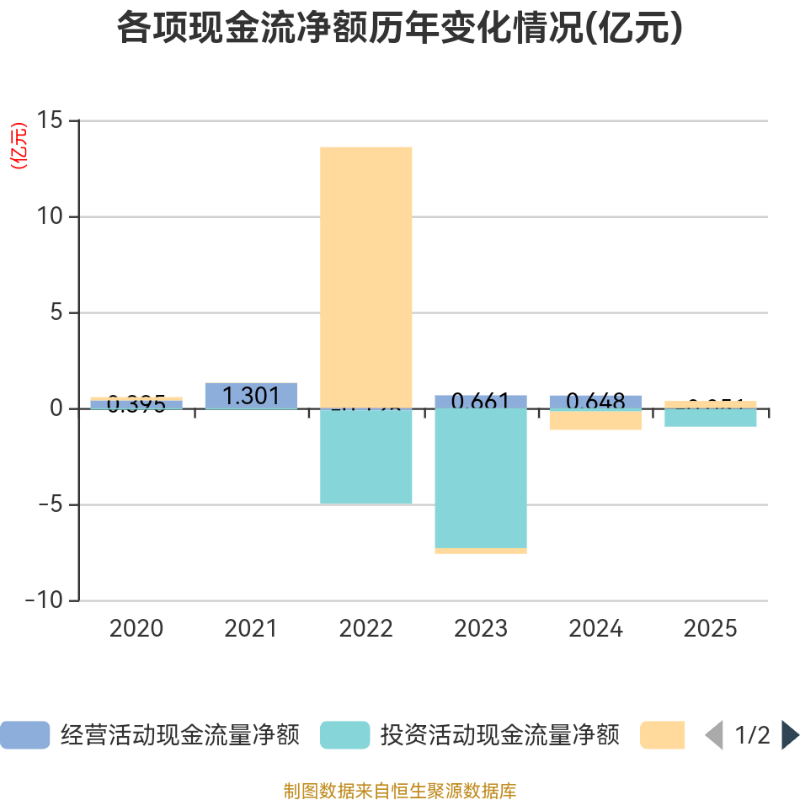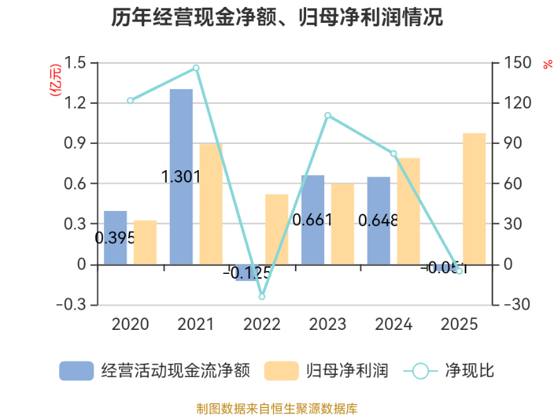 截至2025年,公司经营活动现金流净额为-506.53万元,同比减少6986.73万元;筹资活动现金流净额3683.5万元,同比增加1.32亿元;投资活动现金流净额-9205.41万元,上年同期为-1822.26万元。