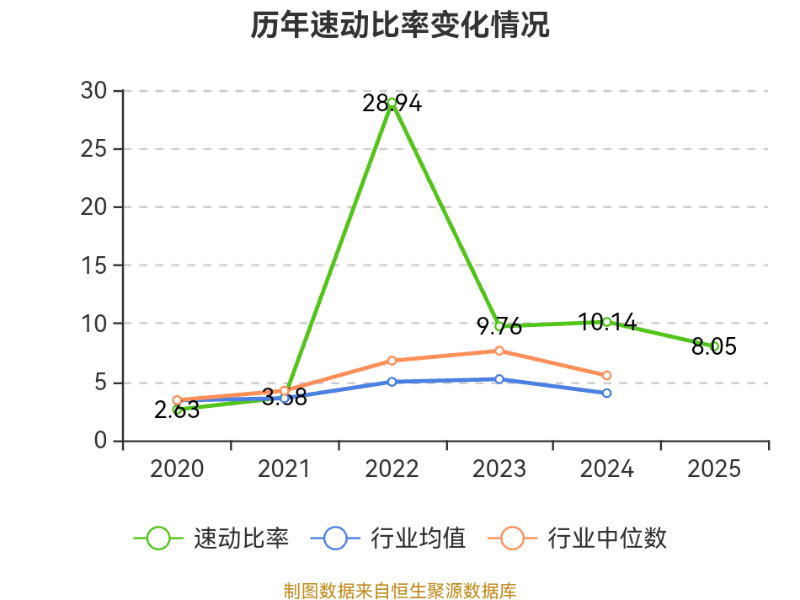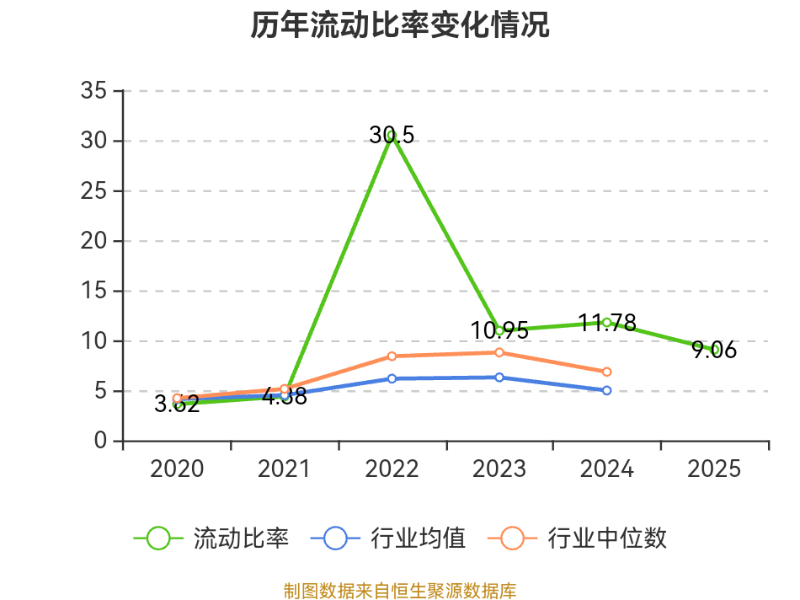 2025年,公司流动比率为9.06,速动比率为8.05。