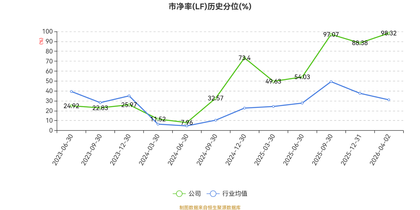 市盈率、市净率为负时,不显示当期分位数,会导致折线图中断。