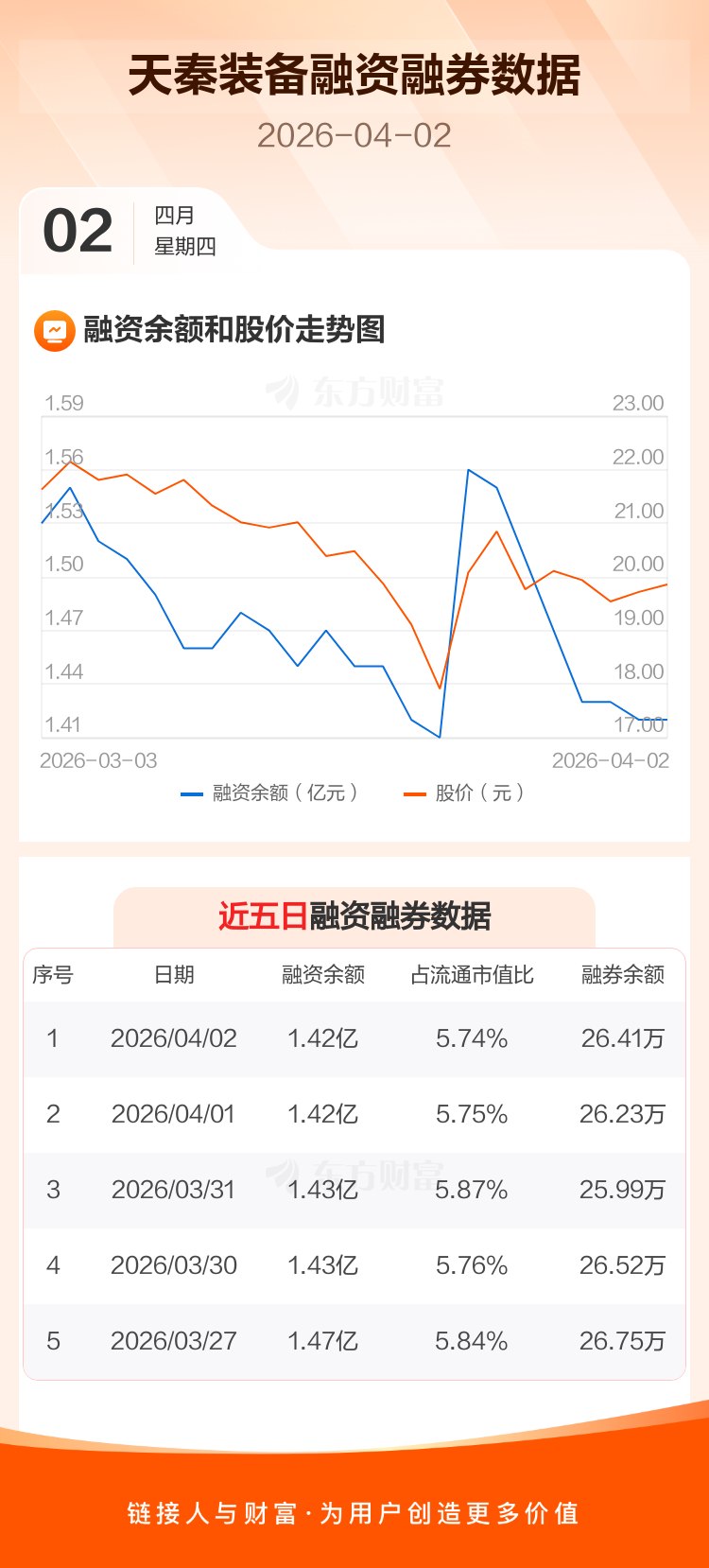 交易所最新数据显示,天秦装备于2026年4月2日获融资买入706.58万元,融资偿还629.81万元,当日融资净买入76.77万元。目前,该股融资余额1.42亿,占流通市值比例为5.74%。