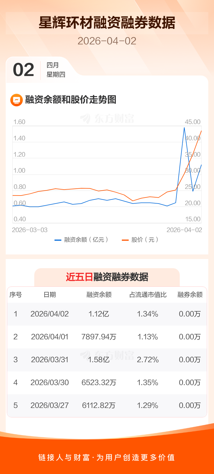 交易所最新数据显示,星辉环材于2026年4月2日获融资买入8742.44万元,融资偿还5412.01万元,当日融资净买入3330.43万元。目前,该股融资余额1.12亿,占流通市值比例为1.34%。