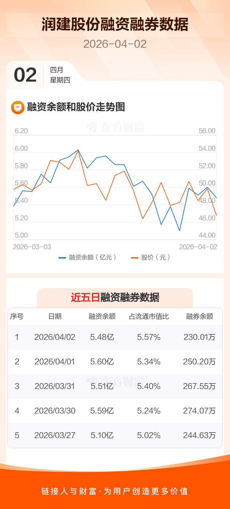 交易所最新数据显示,润建股份于2026年4月2日获融资买入8210.89万元,融资偿还9409.35万元,当日融资净偿还1198.46万元。目前,该股融资余额5.48亿,占流通市值比例为5.57%。