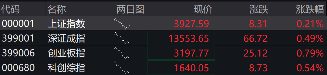 4月3日,A股四大指数集体高开,上证指数涨0.21%,深证成指涨0.49%,创业板指涨0.79%,科创综指涨0.54%。