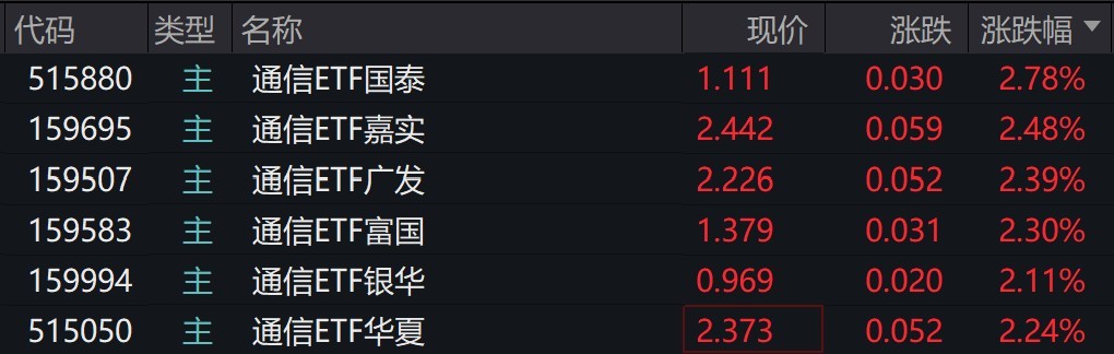 受盘面影响,通信相关ETF涨超2%。