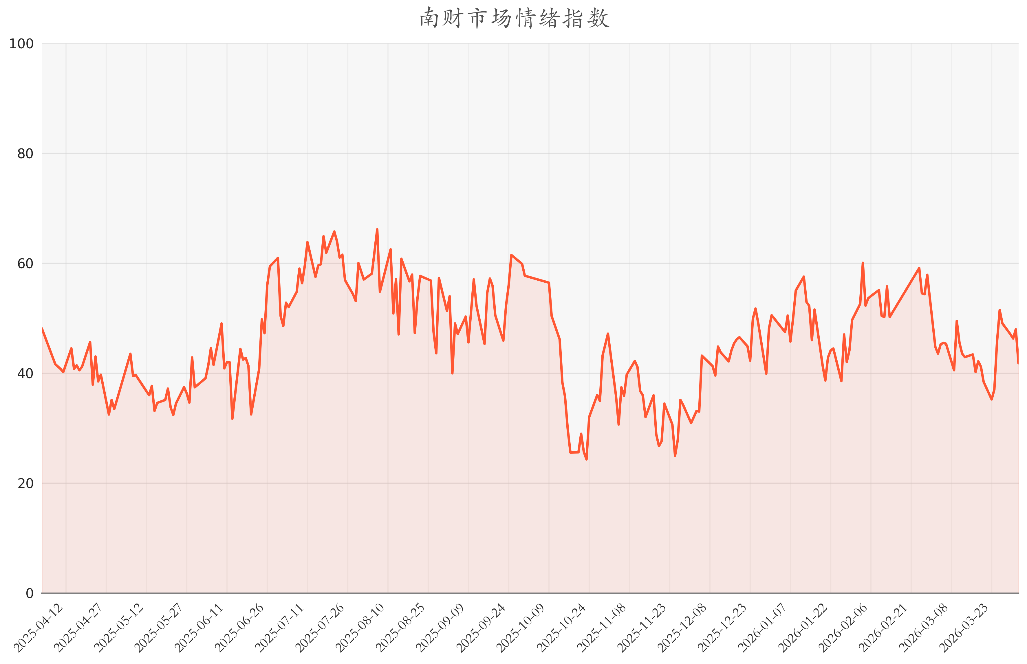 今日南财市场情绪指数为41.83,市场投资热度明显降低