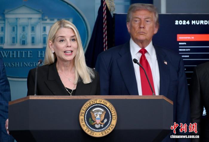 当地时间4月2日,美国总统特朗普宣布,帕姆·邦迪不再担任司法部长一职。资料图为邦迪2025年8月出席白宫记者会。中新社记者陈孟统摄