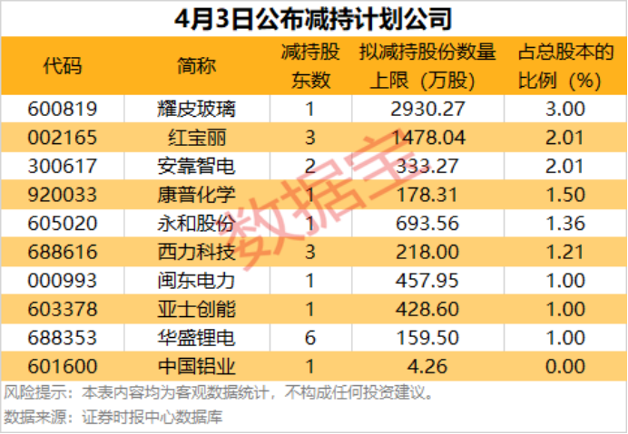今日共10家公司公告减持计划,拟减持比例居前的有耀皮玻璃、红宝丽、安靠智电等。从市场表现看,拟减持比例居前的这3只股票今日早盘均跌超5%。