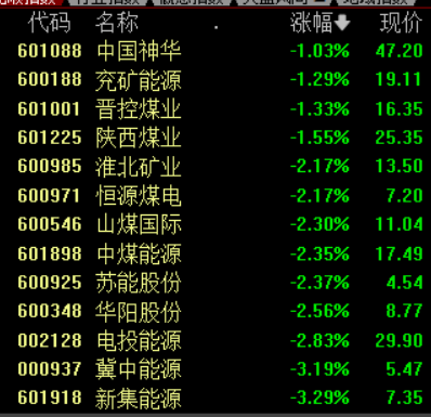煤炭股集体下挫,云煤能源跌超9%,郑州煤电、陕西黑猫、安泰集团等跌幅居前。