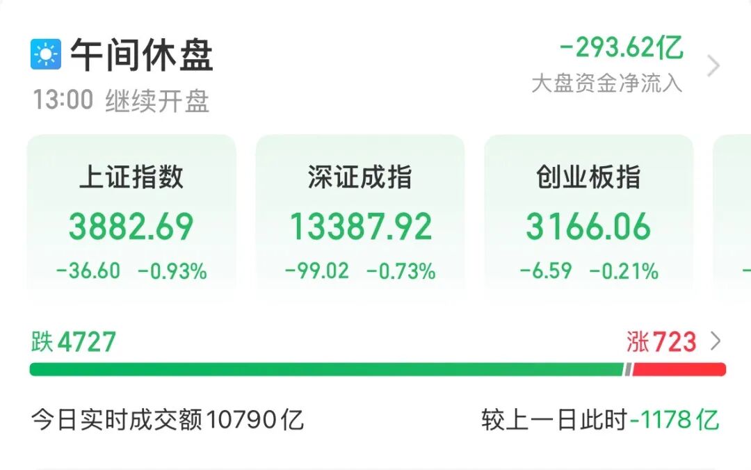 4月3日早盘,A股市场高开低走,科创综指逆势上涨。截至午间收盘,上证指数报3882.69点,跌0.93%;深证成指跌0.73%,创业板指跌0.21%,科创综指涨0.11%。沪深北三市半日成交10790亿元,中际旭创(300308)成交额130.7亿元,位居A股第一。