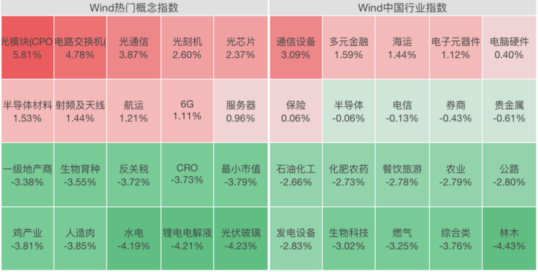 【导读】A股三大指数高开低走,通信板块爆发,CPO大涨!半导体、航运等板块逆市拉升!