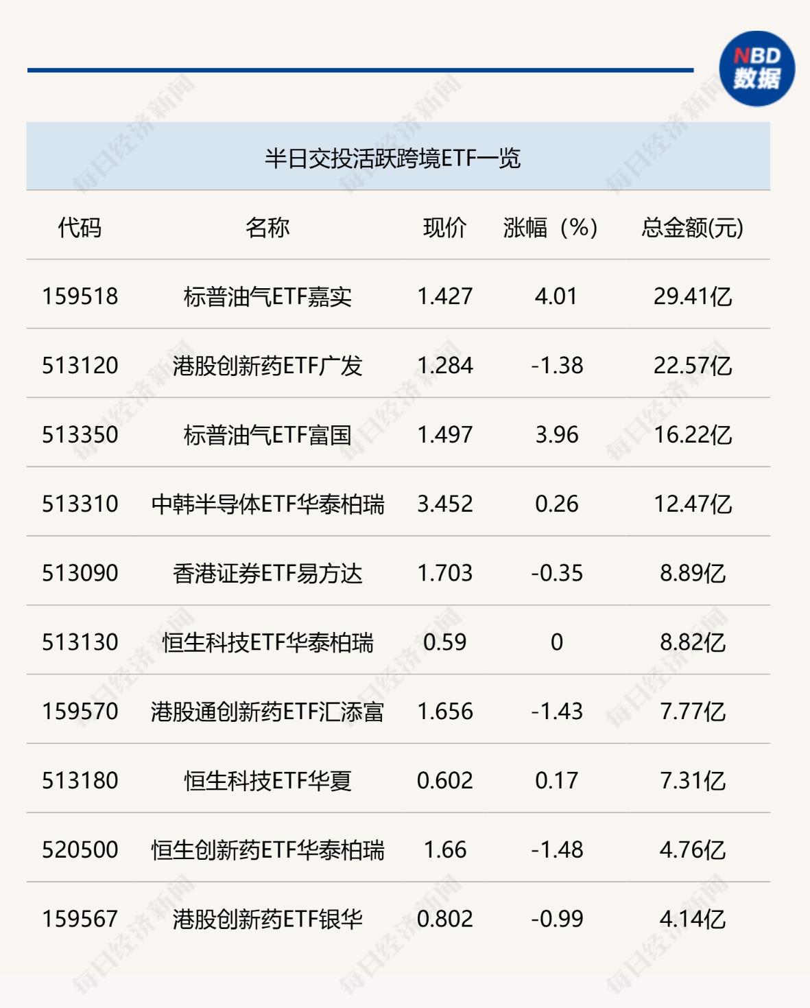 今日,ETF交投整体低迷,通信ETF国泰(515880)表现活跃,放量大涨,半日成交金额为13.52亿元;跨境ETF方面,今日上午无一只ETF成交金额超过30亿元。