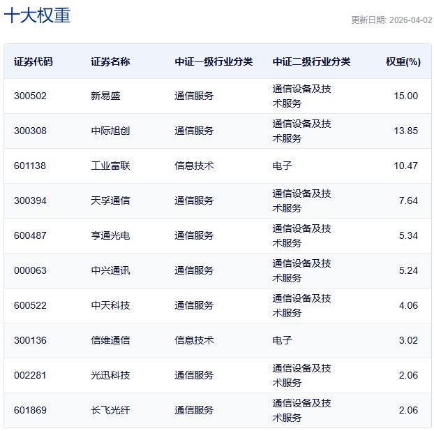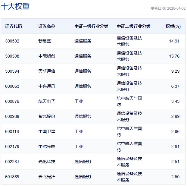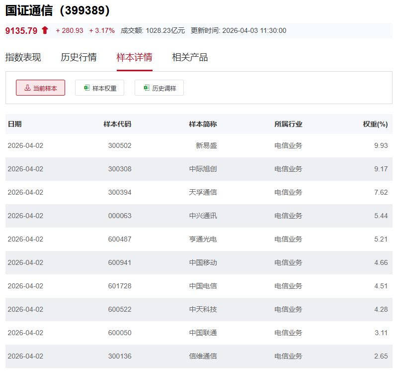 国证通信指数主要权重股