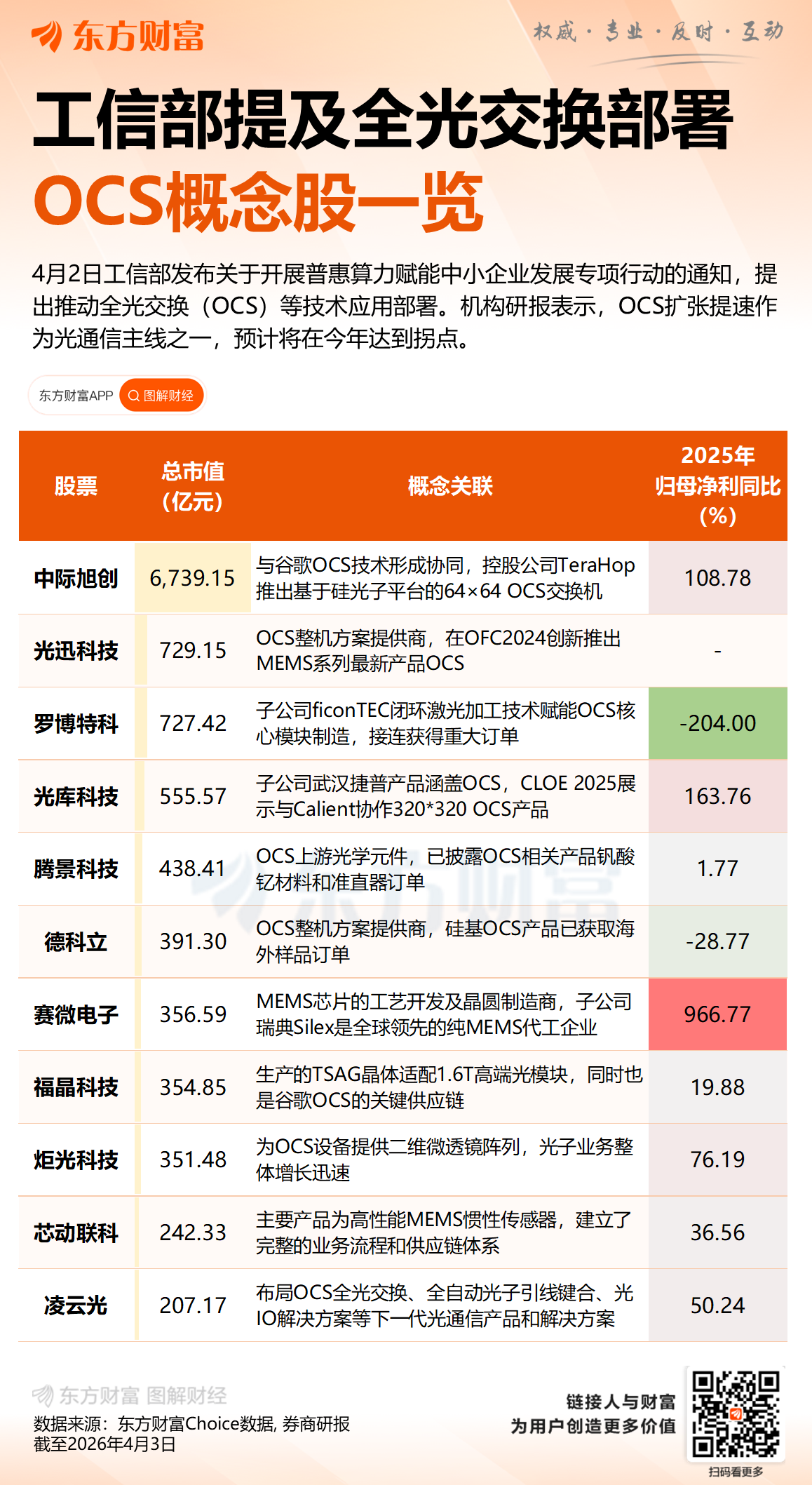 与此同时,上海证券研报称,OCS扩张提速作为光通信主线之一,预计将在今年达到拐点。