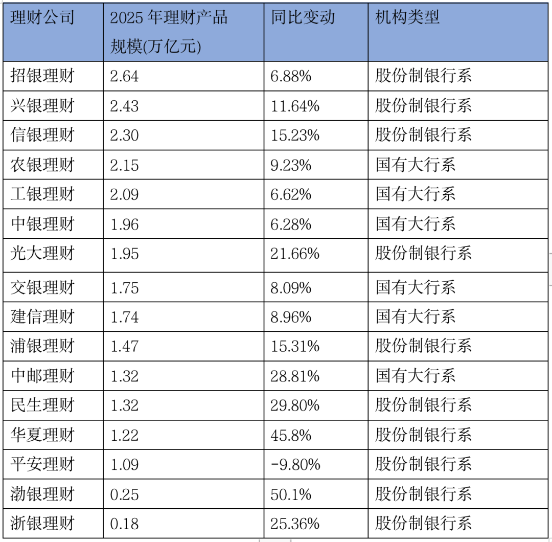 表:部分理财公司2025年理财规模情况