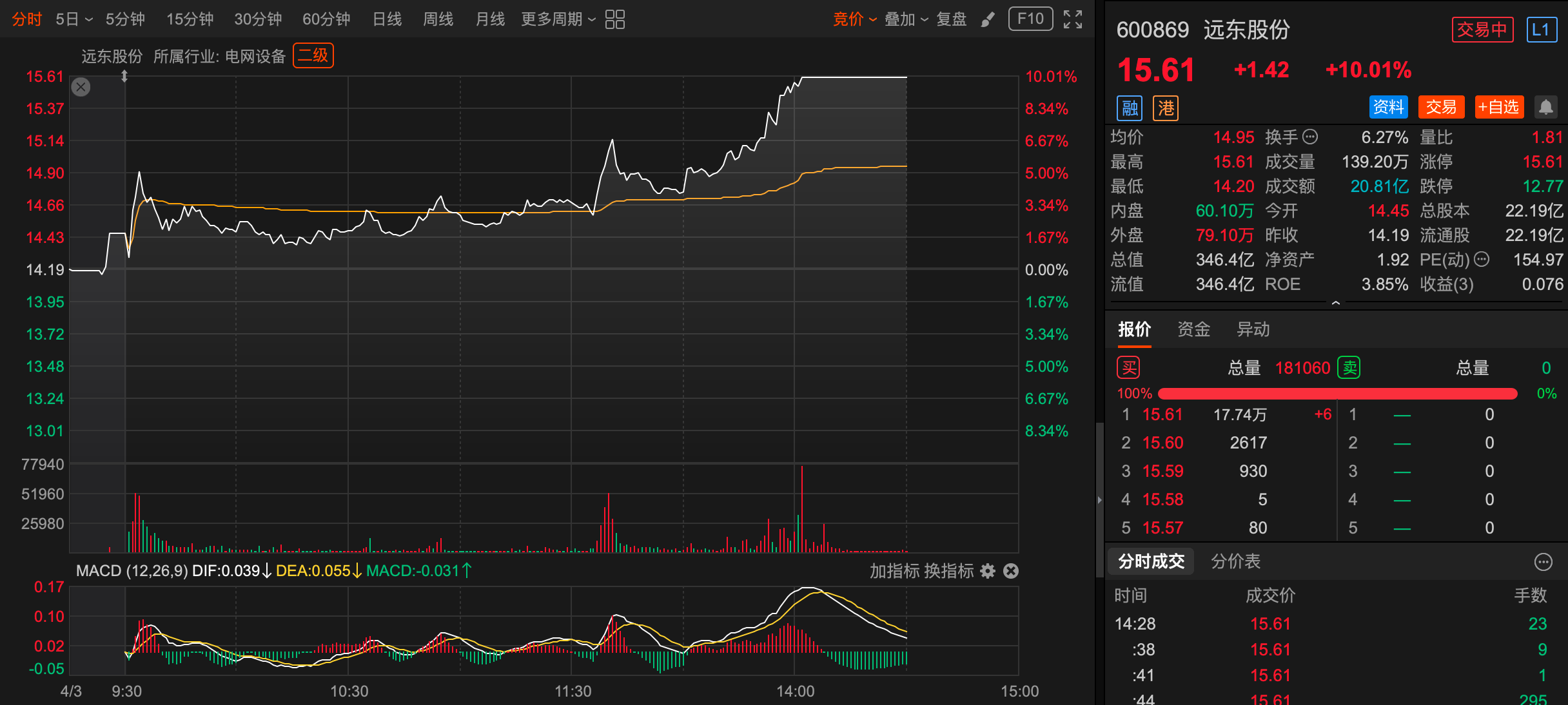 个股异动 | 远东股份涨停 公司获得约2320万元AIDC用光纤订单