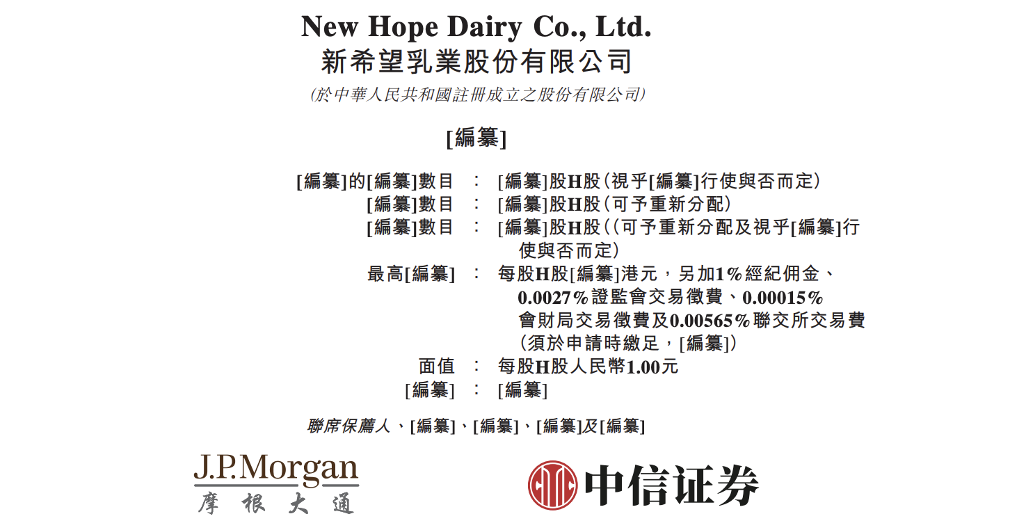 4月2日,港交所文件显示,新希望乳业股份有限公司向港交所提交上市申请书,联席保荐人为摩根大通、中信证券。