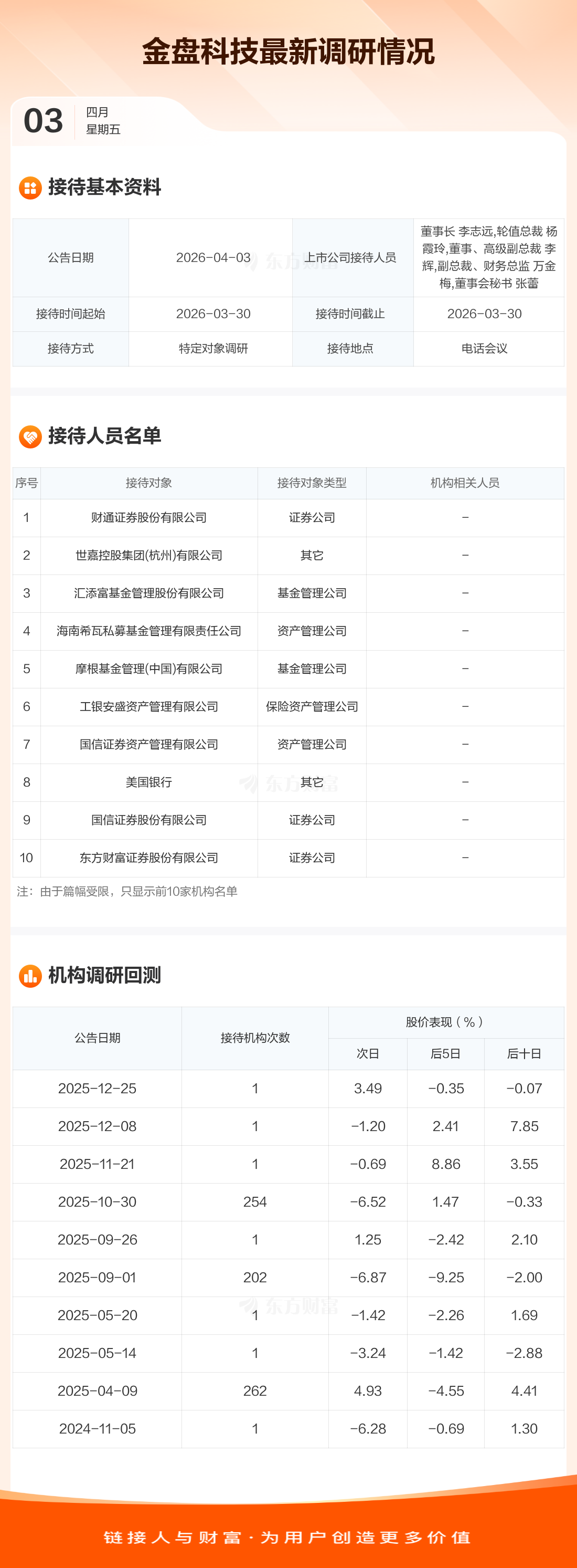 【调研快报】金盘科技接待财通证券股份有限公司等285家机构调研