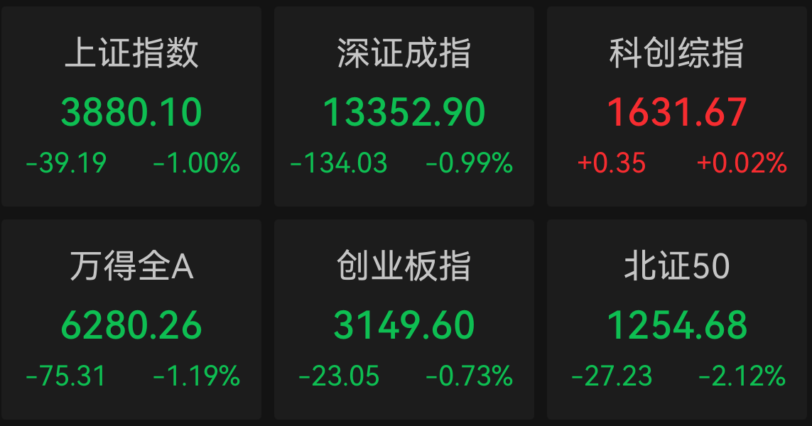 4月3日,四大股指涨跌不一,上证指数跌1%,再度跌破3900点关口;深成指跌0.99%,创业板指跌0.73%,科创综指涨0.02%。