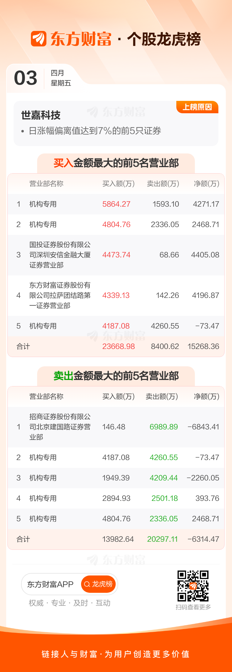 世嘉科技(002796)龙虎榜数据(04-03)