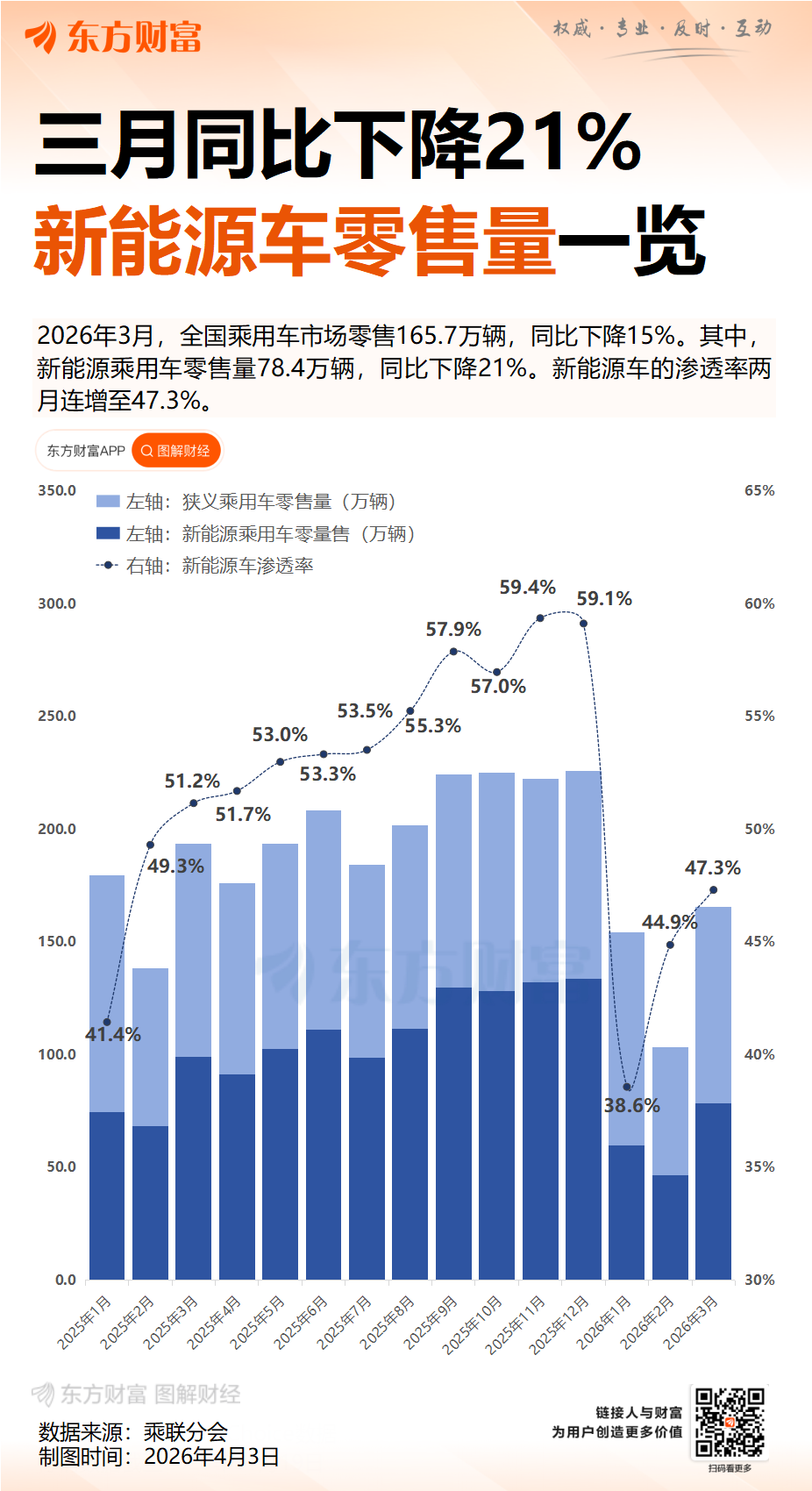 3月1-31日,全国乘用车市场新能源零售渗透率47.3%;3月1-31日,全国乘用车厂商新能源批发渗透率48.6%。