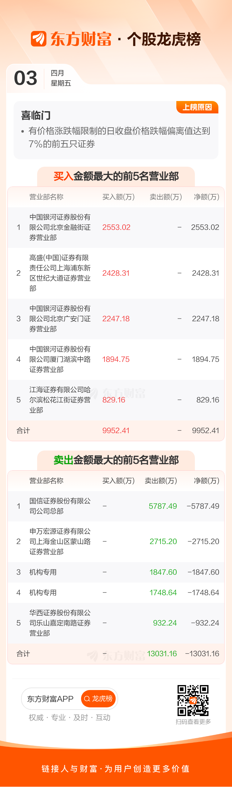 喜临门(603008)龙虎榜数据(04-03)