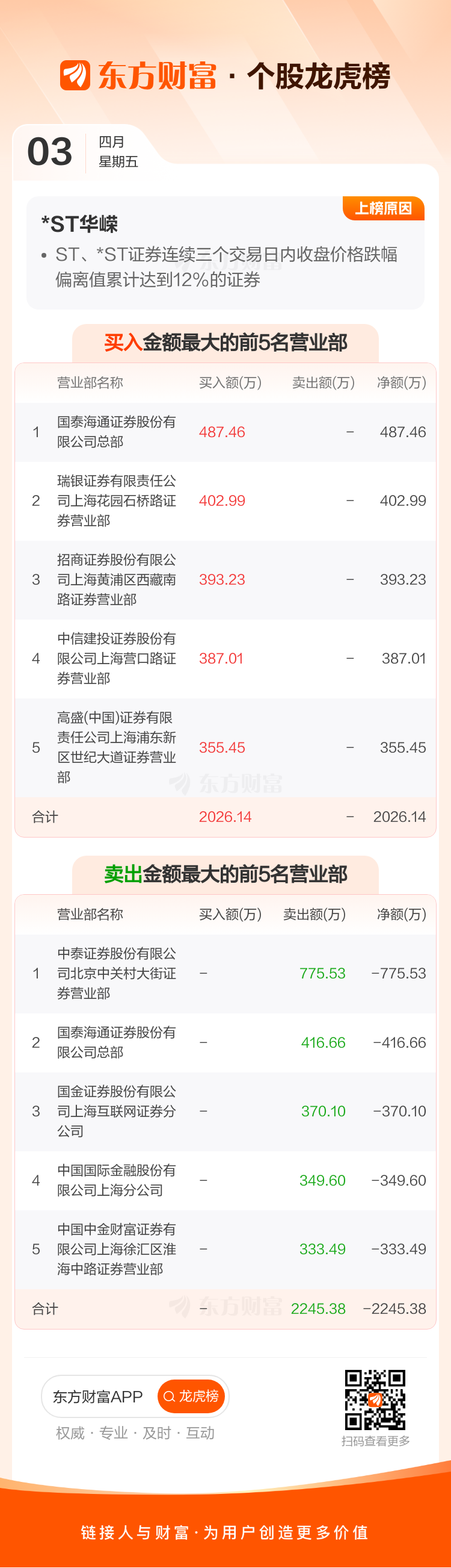 *ST华嵘(600421)龙虎榜数据(04-03)