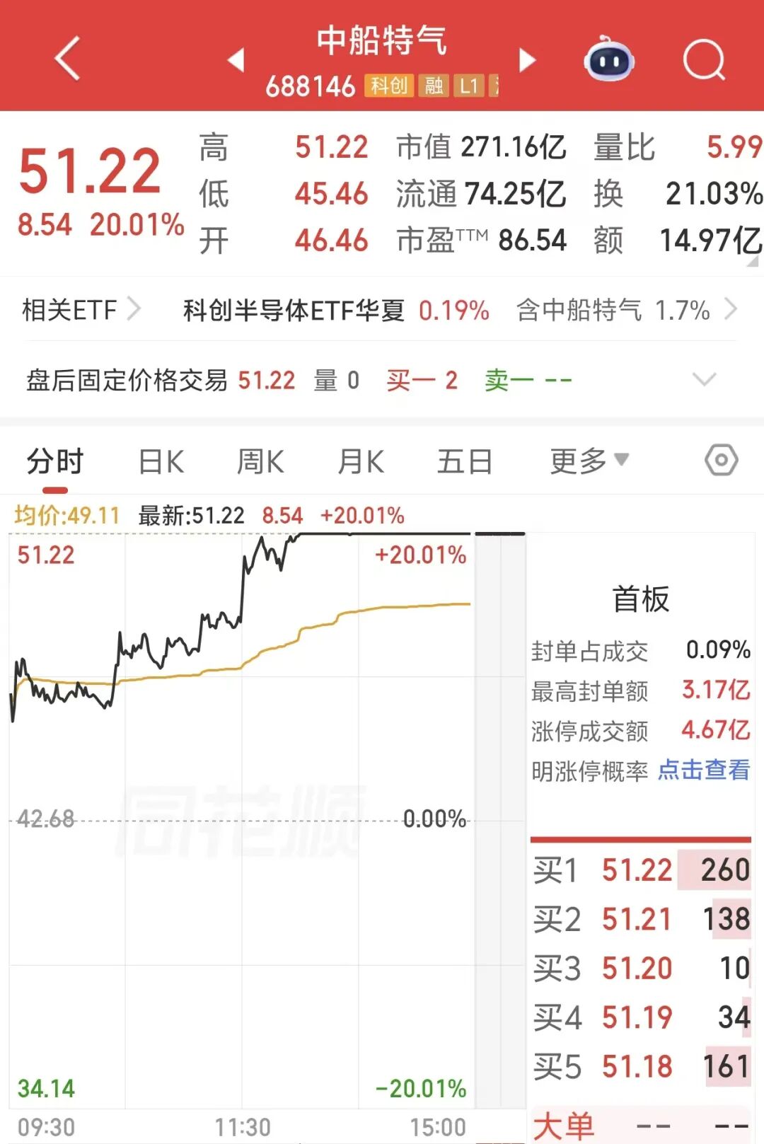 今日午后,工业气体板块持续活跃,中船特气“20CM”涨停,最新市值为271.16亿元;华特气体、金宏气体、昊华科技、和远气体等跟涨。