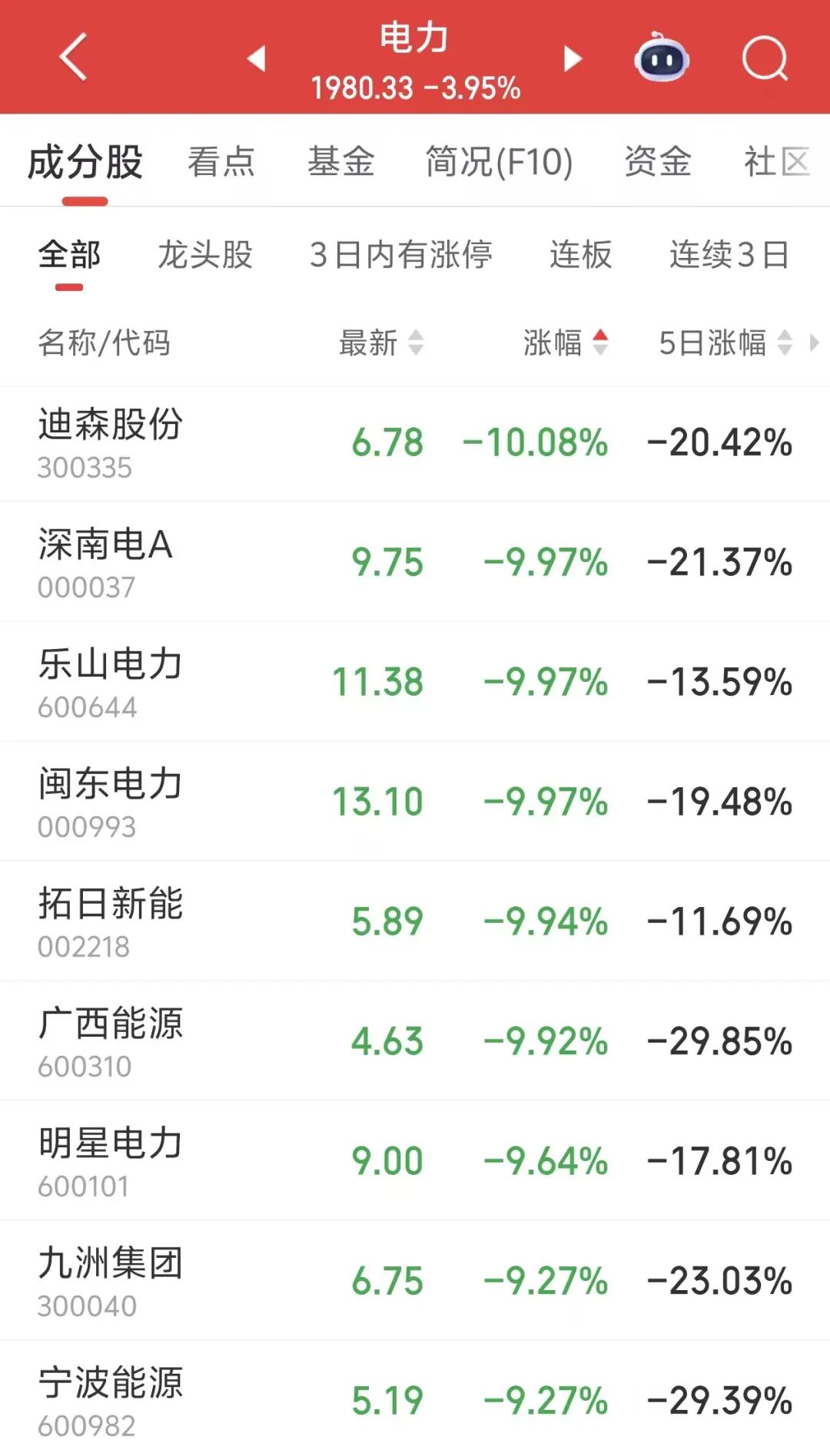 今日午后,电力板块持续回调,深南电A、乐山电力、闽东电力等跌停。