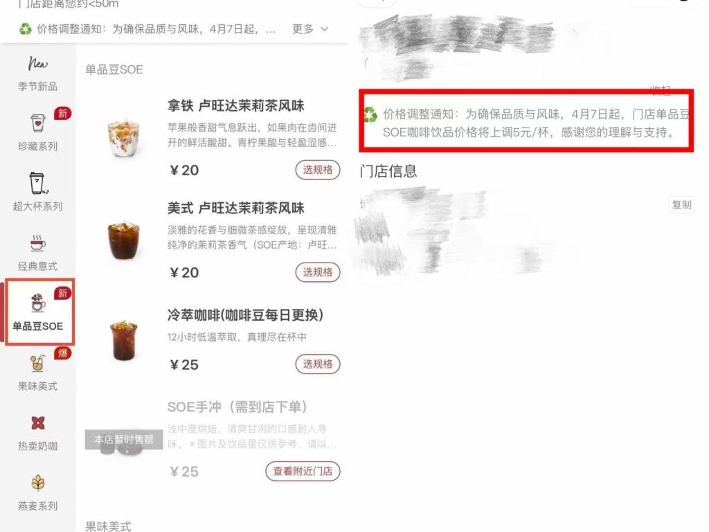 4月3日消息,Manner发布价格调整通知,将从4月7日起将门店单品豆SOE咖啡,每杯价格上调5元。