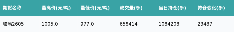 南财智讯4月3日电,盘后期货数据显示,郑州商品交易所的玻璃主力合约收跌2.01%,收盘报977.0元/吨,日内资金流出1857.04万元。其他相关指标见下表:
