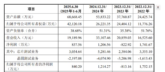 贝壳财经记者注意到,晶圆测试业务(即探针卡的研发、生产和销售)的净亏损逐年扩大,财报显示,该业务在2022年-2024年分别净亏损1613.43万元、3206.98万元、4074.90万元,2025年上半年净亏损2197.08万元。