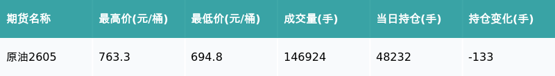 南财智讯4月3日电,盘后期货数据显示,上期能源的原油主力合约收涨5.03%,收盘报722.0元/桶,日内资金流出2735.5万元。其他相关指标见下表: