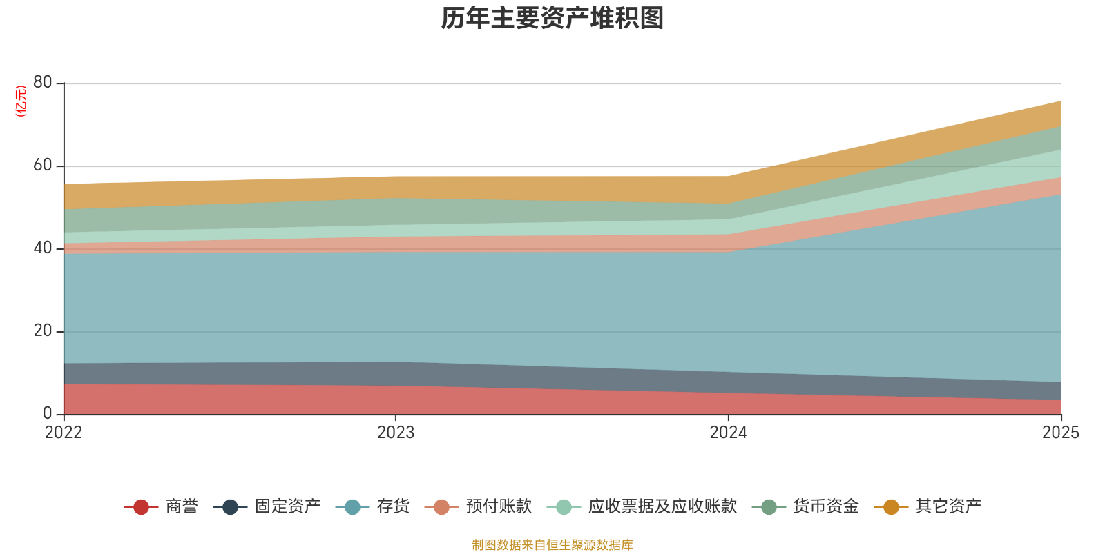 资产重大变化方面,截至2025年12月,公司存货较上期末增加56.7%,占公司总资产比重上升9.6个百分点;商誉较上期末减少33.64%,占公司总资产比重下降4.39个百分点;固定资产较上期末减少14.65%,占公司总资产比重下降3.09个百分点;应收票据及应收账款较上期末增加84.19%,占公司总资产比重上升2.53个百分点。