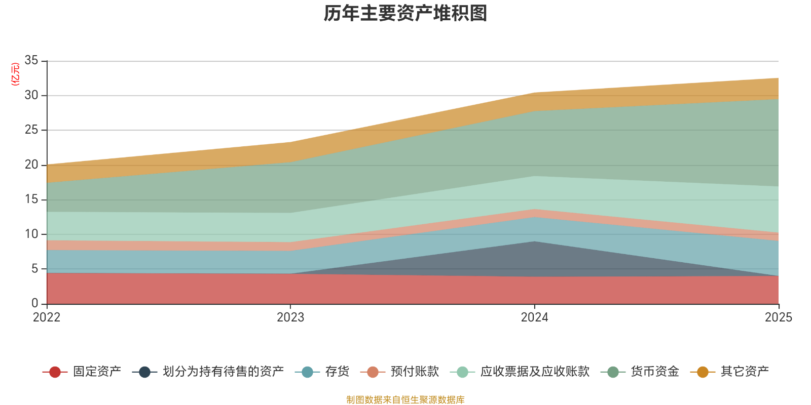 资产重大变化方面,截至2025年12月,公司划分为持有待售的资产较上期末减少100%,占公司总资产比重下降16.74个百分点;货币资金较上期末增加34.58%,占公司总资产比重上升7.95个百分点;应收票据及应收账款较上期末增加39.66%,占公司总资产比重上升4.79个百分点;存货较上期末增加44.61%,占公司总资产比重上升4.05个百分点。