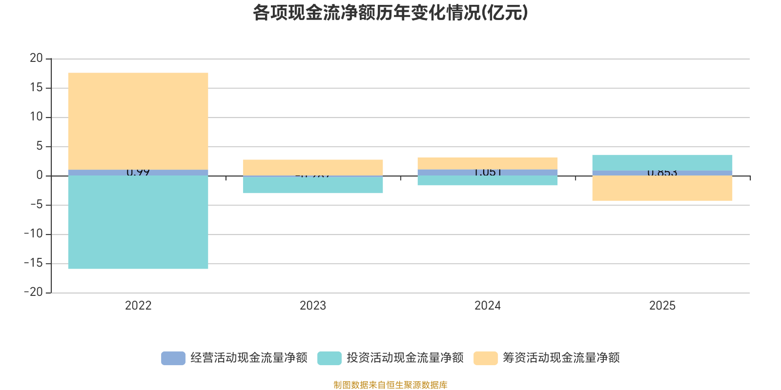 2025年,公司经营活动现金流净额为8531.1万元,同比下降18.85%;筹资活动现金流净额-4.32亿元,同比减少6.35亿元;投资活动现金流净额2.65亿元,上年同期为-1.66亿元。